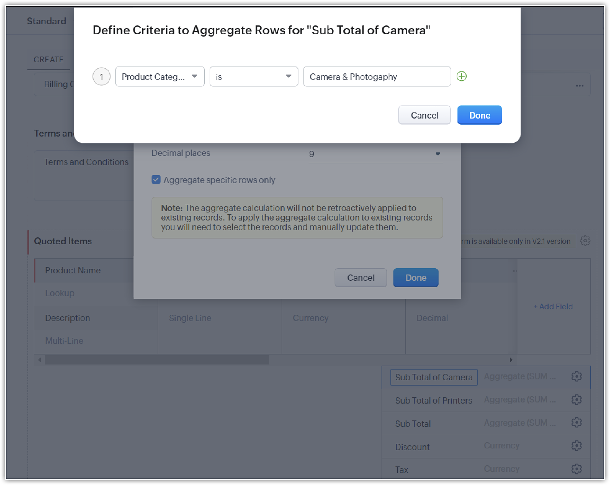 [Zoho CRM] Aggregate Fields in Subforms Enhancements