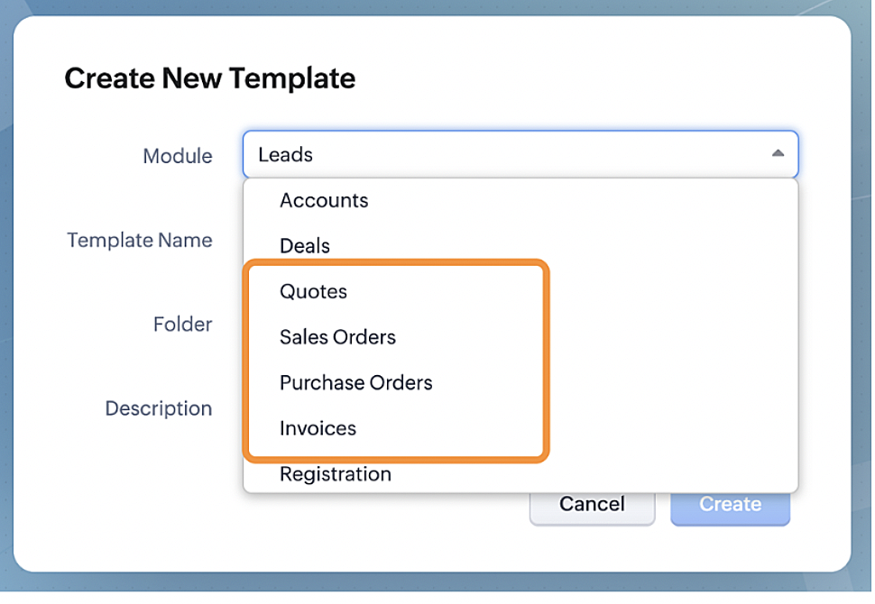 In Zoho CRM, users can already create templates for purchase orders, sales orders, quotes, and invoices. However, they have the following limitations: