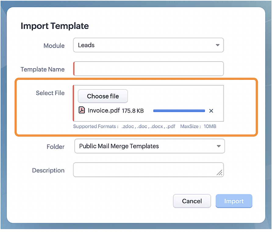 That's why, along with the existing import template formats—ZDOC, DOCX, and DOC—we're introducing the ability to import PDF files as Mail Merge templates.